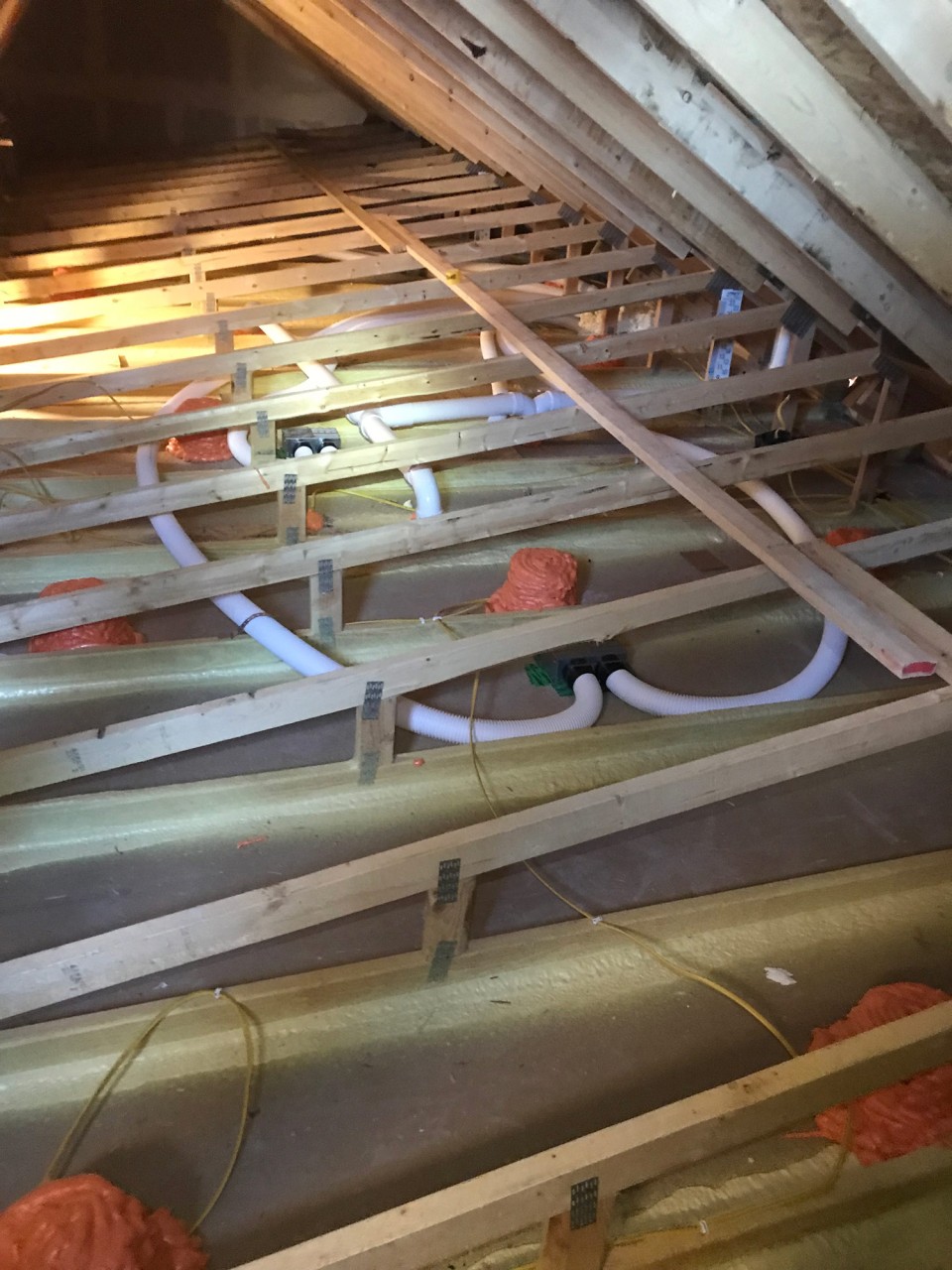 3.#NoLidLeakage Seal up or #airtight the ceiling drywall and make a solid separation from the fresh air and dust-free environment we just made in steps 1 and 2. Creating an airtight lid, which is best achieved when you have access from the attic or inside a vault if it's vaulted. Can lights become the ultimate enemy and LEDs are often no better. I rogged ( #RantingBlog ) about it a few blogs ago in the above link. The insulation companies seem to do this pretty good though. They seem to be #prettygood about removing insulation, foaming around all the electrical wire penetrations up through the top plate, foaming around fire alarms, rough-in boxes, outlets, and all the other drywall holes that lead into the attic. In-fact, IF EVA, this is a case when it is REASONABLE to use a splash of foam in places. If the contractors have their PPE on (Personal Protective Equipment) they love to foam and I'm #Okay. Foam is PFM, a military term for really cool! Not to mention it's fast.
